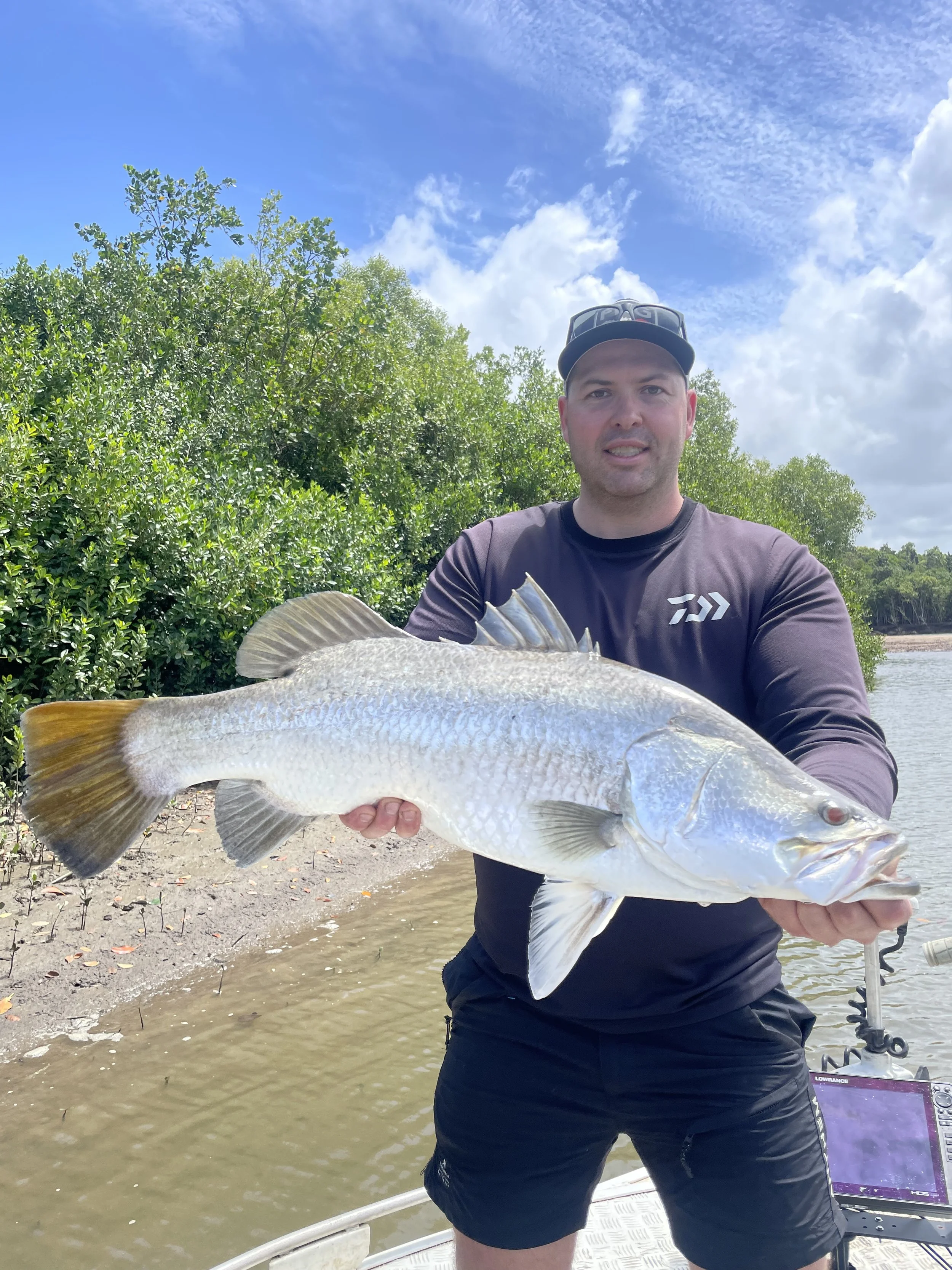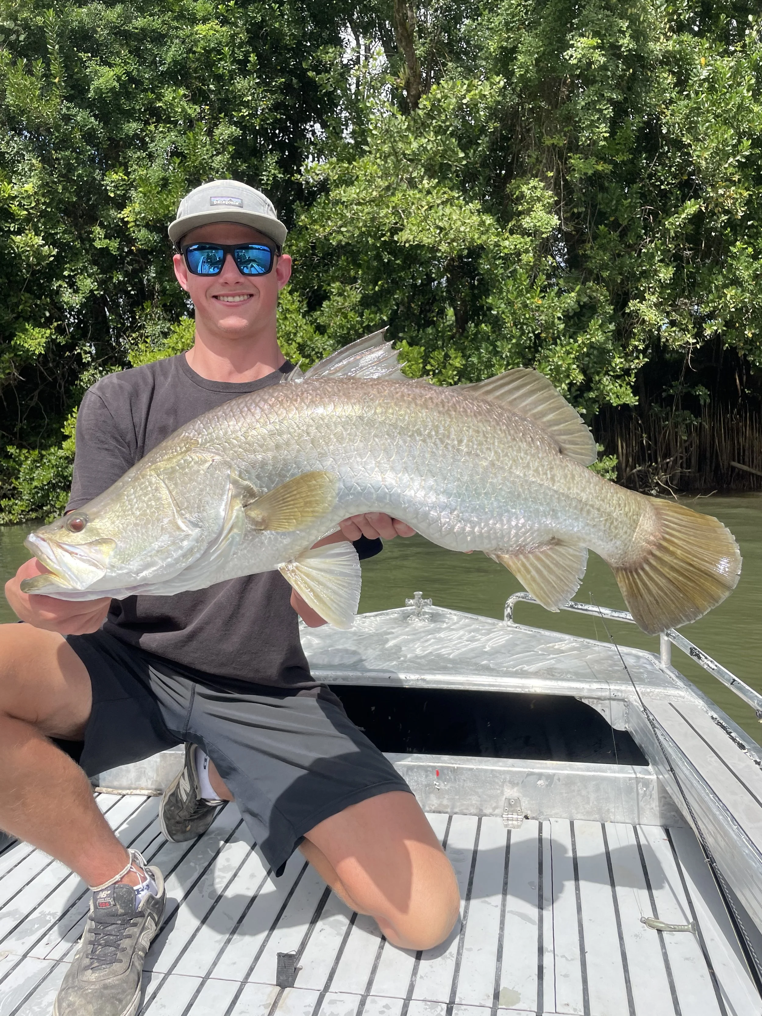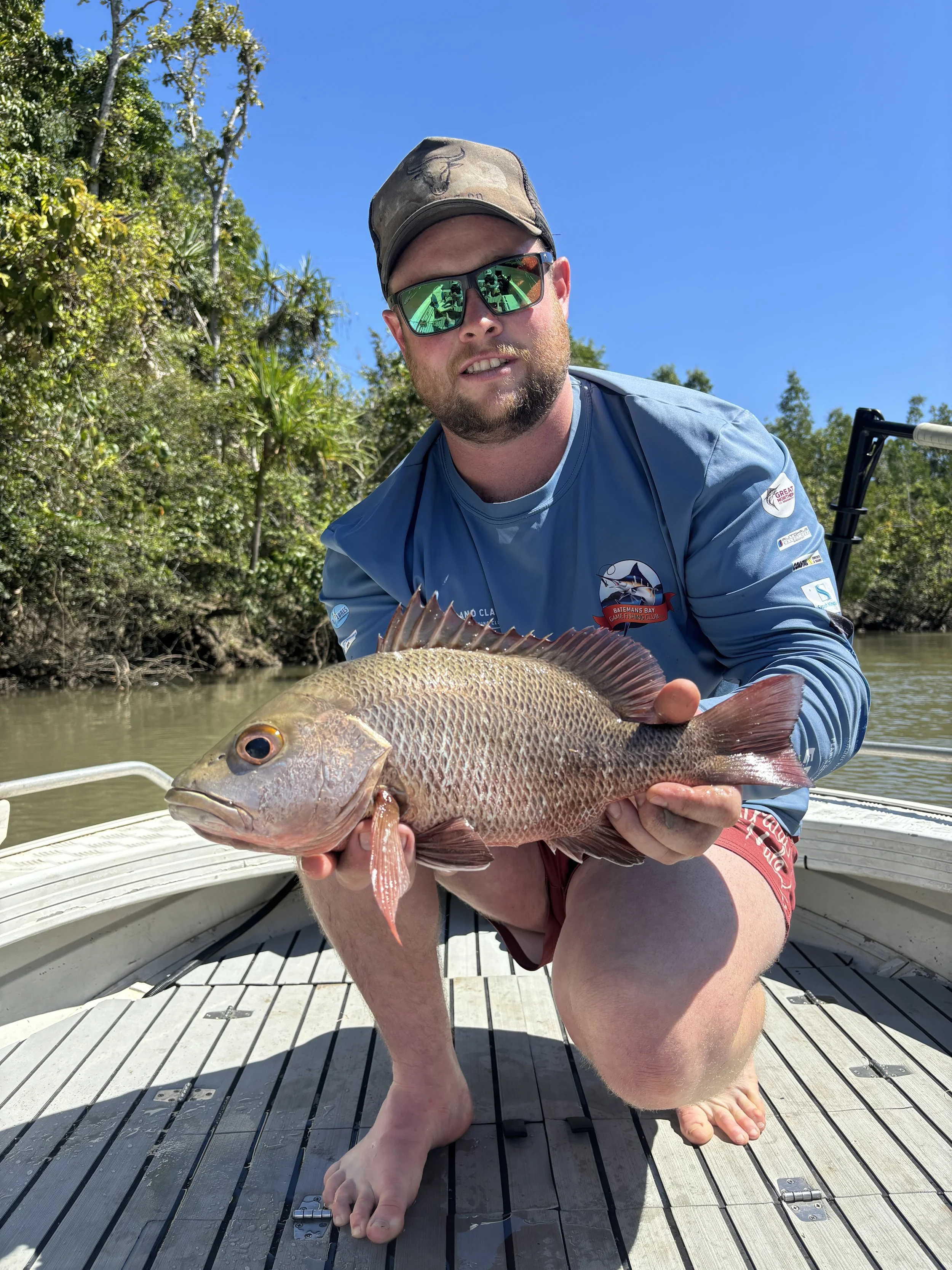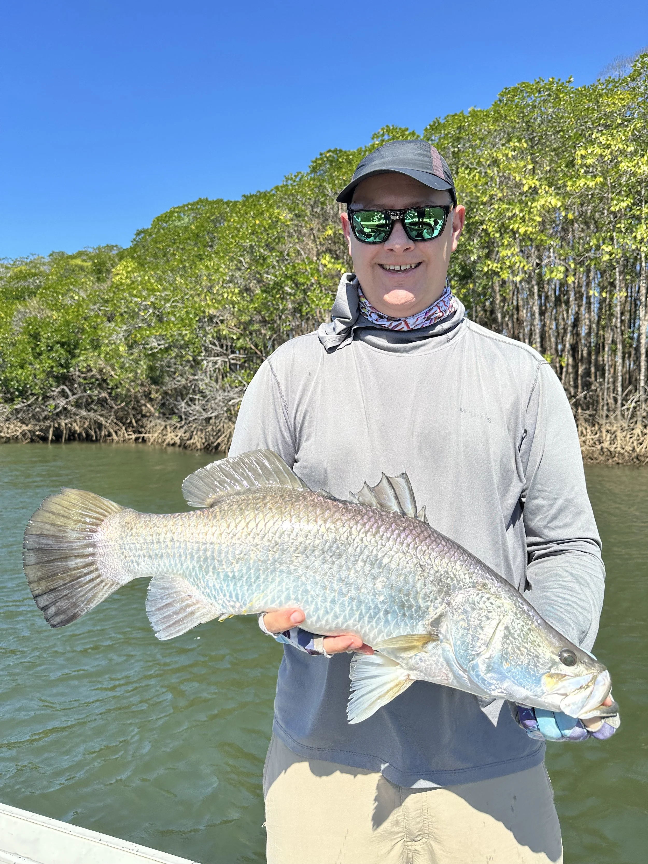 Whether you're after a half-day Cairns fishing charter or a full-day barra fishing adventure, every trip is private, personal and backed by a money-back guarantee. Our saltwater days regularly see epic numbers of barra — sometimes 50+ Barramundi in a single day's fishing. Add Queenies on topwater, tight-country Mangrove Jack pursuits and crystal-clear jungle drifts for sight casting, and you've got the complete Cairns river fishing experience.